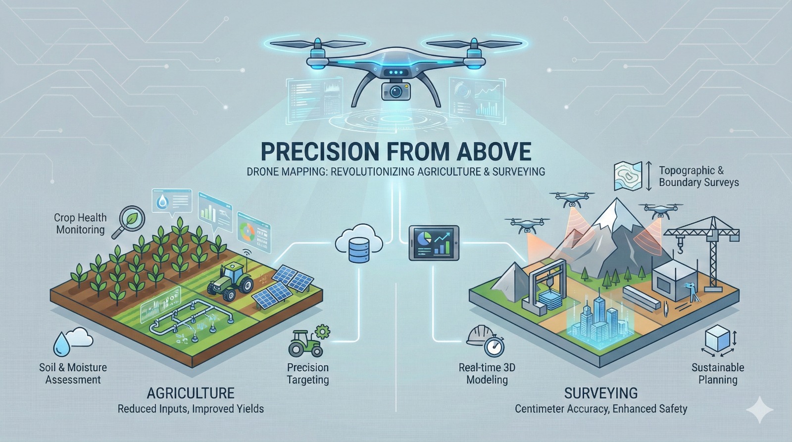 Drone mapping represents a fundamental shift in land management. By delivering precise, real-time data from above, it empowers farmers to grow smarter and surveyors to work faster and safer. As technology evolves with smarter sensors, more capable drones, and powerful AI, drone mapping will play an increasingly vital role in building a more efficient, sustainable, and data-driven future for agriculture and surveying.
